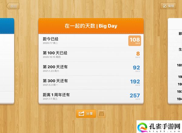 - 点击“BigDay”,查看重要的纪念日节点(100天、200天、300天、1周年等)。