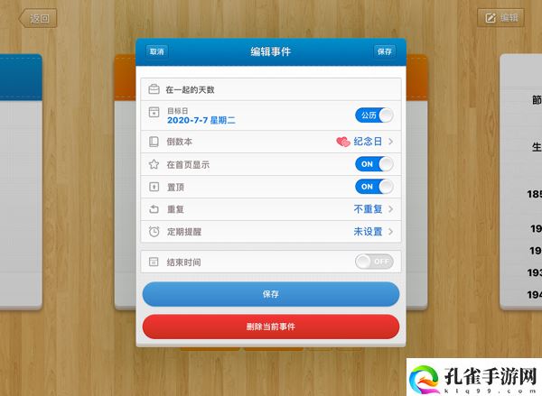 关键步骤:输入你们在一起的起始日期(例如:2020年7月7日)。选择“纪念日”模式,开启置顶显示,设置重复间隔(可选),然后保存。