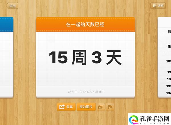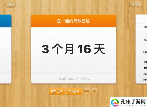 主界面会显示你们在一起的天数(橙色显示,表示已过去的时间)。未来的倒计时则以蓝色显示。