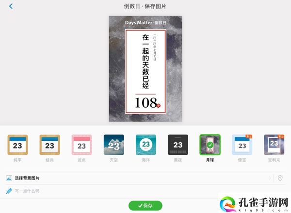 点击已设置的纪念日,可以自定义主题并保存图片,方便分享到社交媒体。