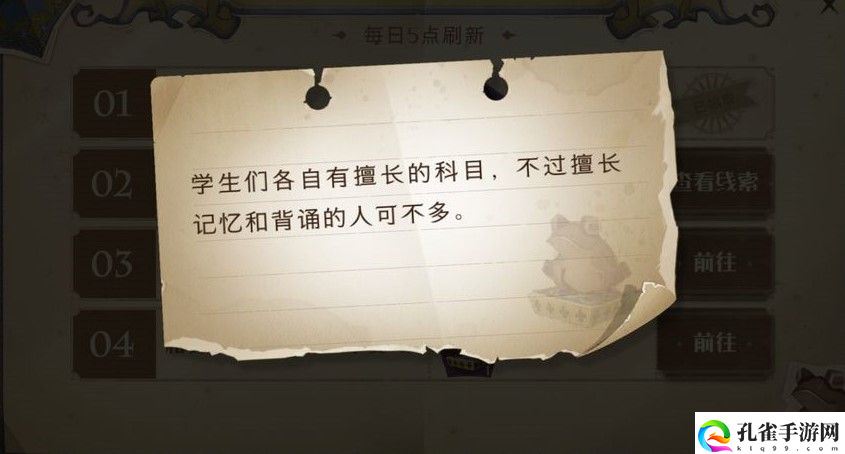 今天线索:学生们各自有擅长的科目,不过擅长记忆和背诵的人可不多。
