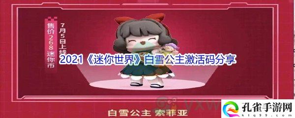 最近大家都发现这个游戏出了新的活动,出了白雪公主索菲亚这个角色,给我们带来最新的激活码,让你们兑换福利礼包。那么2021迷你世界白雪公主激活码是什么呢?下面小编给大家详细介绍下,还不清楚的小伙伴们快来看看吧!
