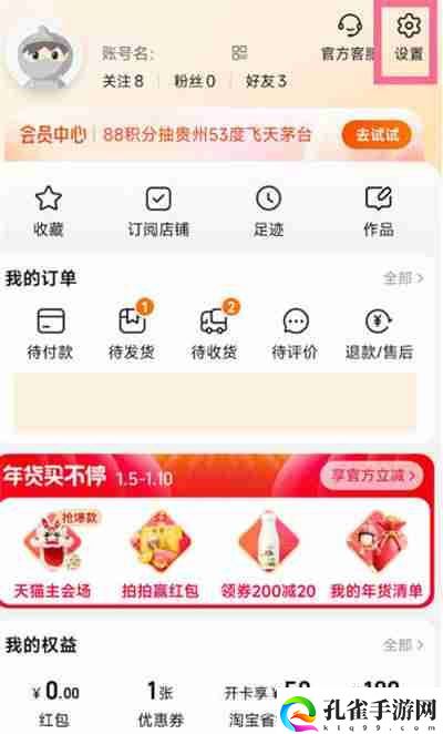 在“我的淘宝”页面,点击右上角的“设置”图标。