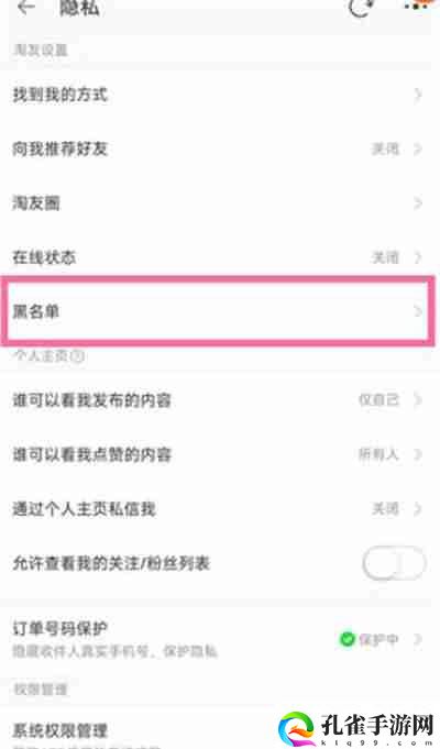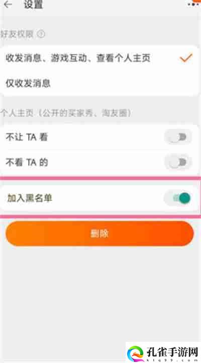 在用户页面,找到“设置权限”或类似选项,然后找到“加入黑名单”的开关,将其关闭即可。
