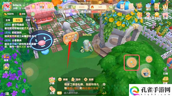 2、玩家们来到自己的家园,在门的左侧找到留言板,点击查看按钮;