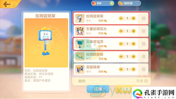 3、最后选择拉姆篮球架或者云朵篮球架,点击购买即可获得。