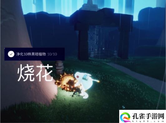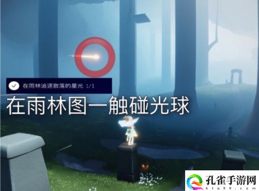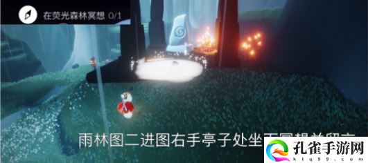 来到荧光森林的位置,找到雨林图中的亭子处,坐下开始冥想即可。