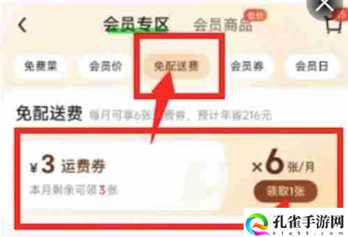 会员免运费券: 开通小象超市会员,每月可领取6张3元运费券,用于抵扣运费。