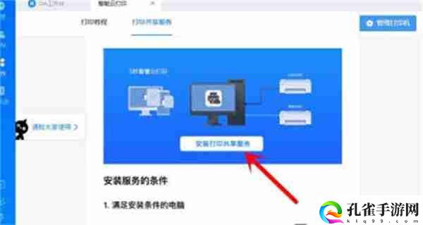 进入云打印页面后,点击“安装打印共享服务”按钮。
