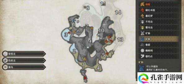 开始挖矿,主要是挖蓝色的矿,出现「矿石增殖」时,矿点产量 x 3,即从原本的 1 + 1 + 1 个变成 3 + 3 + 3 个,三级地质学可以让猎人多采一次,那就是 9 + 3 = 12 个,也就是一个矿点会提供 12 个素材。