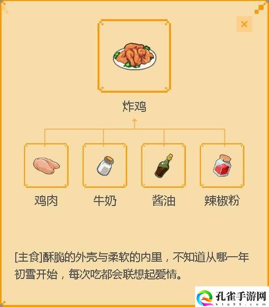 1、只需要收集齐炸鸡的食材就可以解锁,炸鸡需要有鸡肉、牛奶、酱油、辣椒粉;