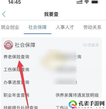 第三步:进入社会保障页面后,点击“养老保险查询”即可查看您的养老保险信息。