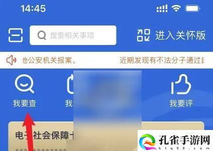 第二步:在“我要查”页面,选择“社会保障”选项。