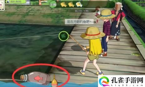 2、准备好后就可以前往朝晖森林进行垂钓了,有鱼饵的话很大概率能获得的;