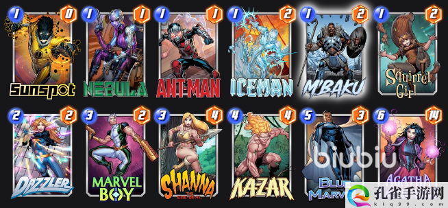 在漫威终极逆转中姆巴库可以说是一张低配版的惊奇队长,不同的是牌局结束以后无论他在哪里都会移动到战力最低的区域,漫威终极逆转姆巴库玩法攻略就是不知道要怎么才能让他发挥作用的朋友们想知道的,下面小编就给大家推荐几个好用并且适合他的流派,并为大家讲解一下他在里面可以扮演的角色。