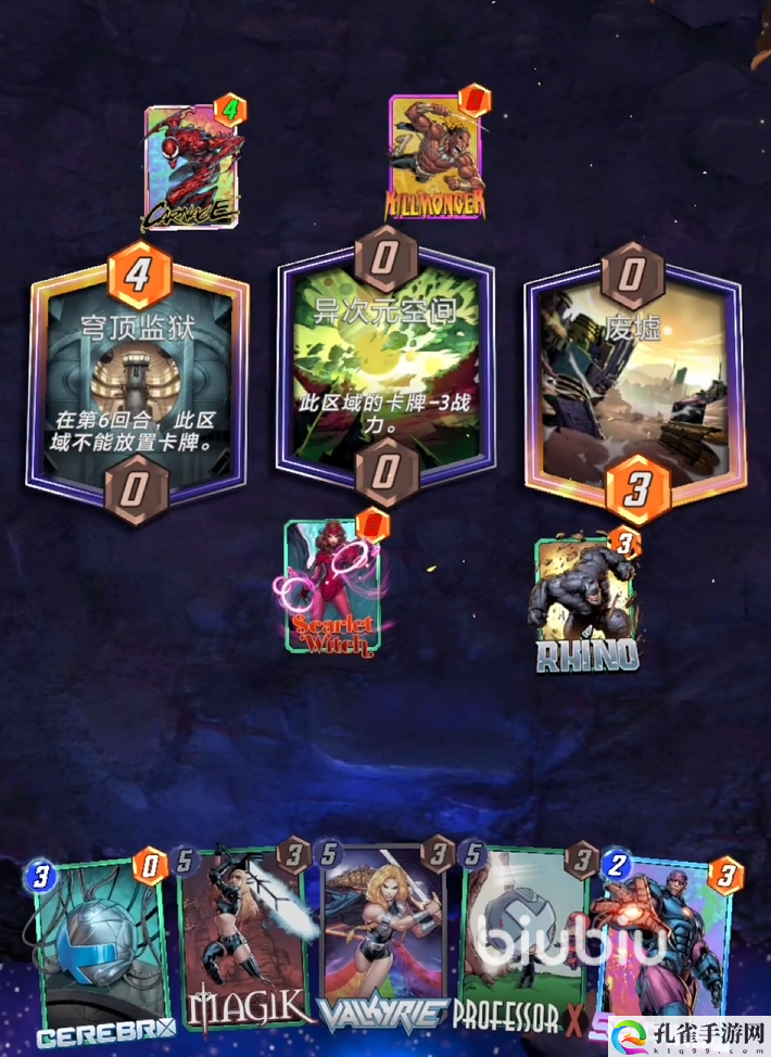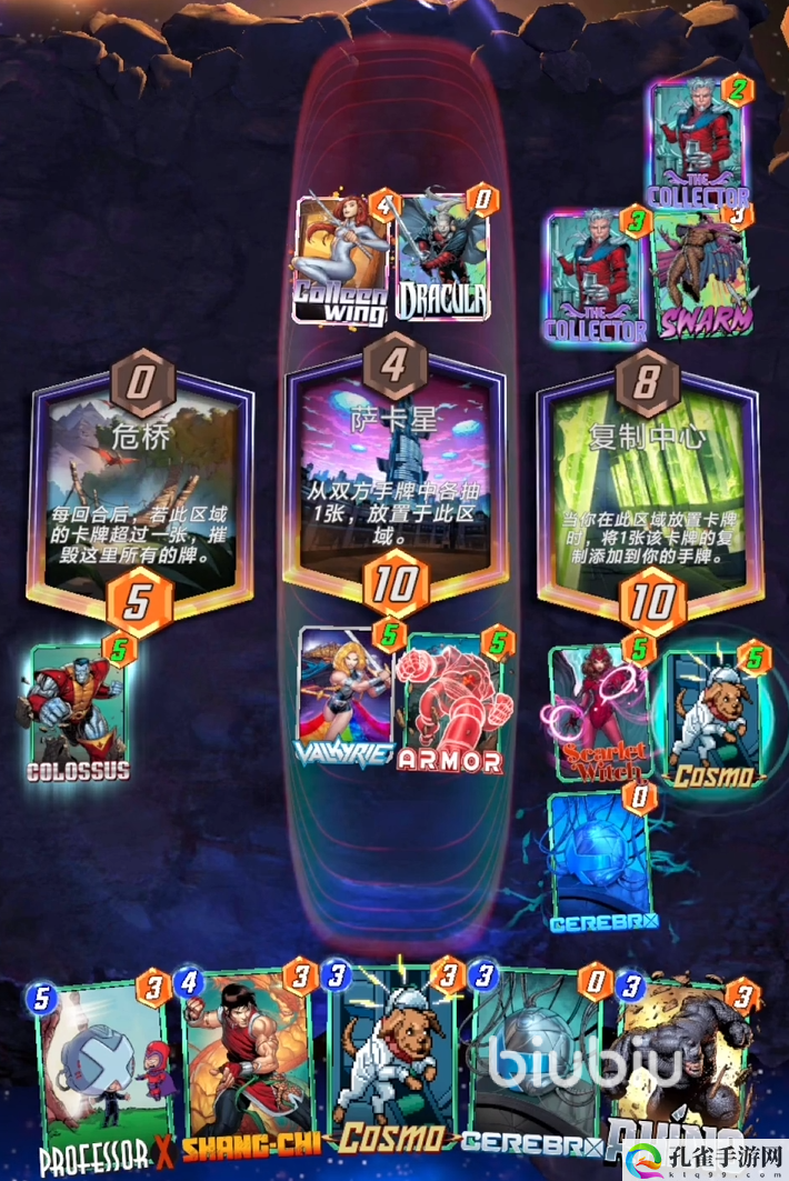 在游戏中犀牛人的效果有时会对局势产生不利影响,这时候就能利用零号的技能将他的摧毁技能移除,来获取到更多的优势,而魔形女可以复制脑波强化机的持续效果,从而让卡牌们都能获取到4点战斗力,可以使用隐形女来把主要的区域盖住,这样对手就不知道大家葫芦里卖的什么药了,等游戏结束时掀开就能让对手目瞪口呆。