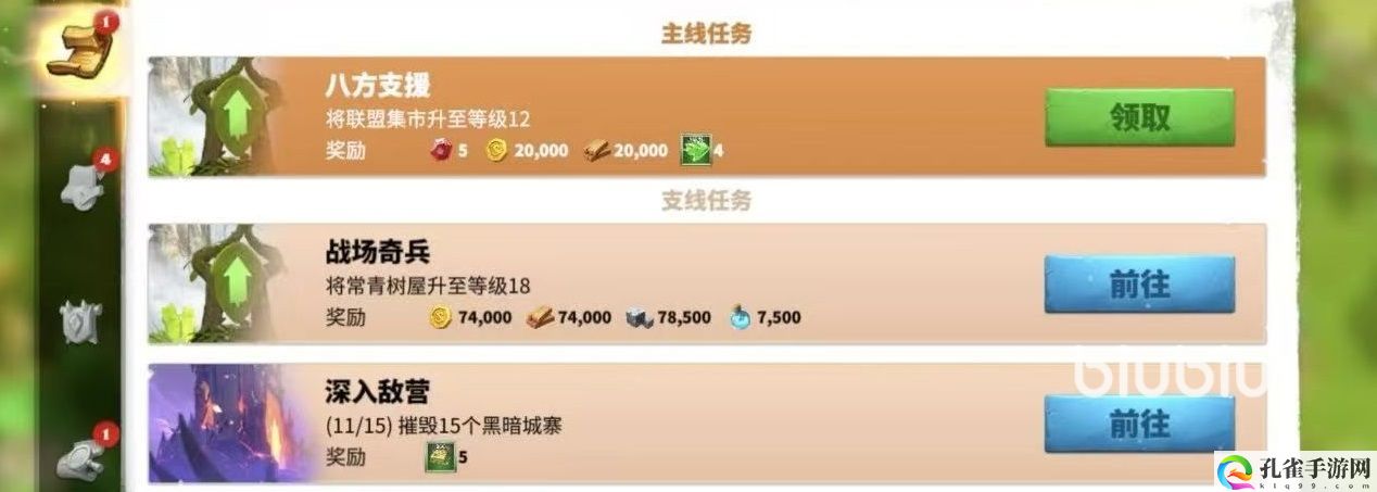 首先是来自于主线任务的奖励,这是资源道具以及宝石的主要获取来源之一,领主们可以跟随主线任务引导,通过升级基地、击败相应的野怪、英雄和神器等级,以及完成其他任务所要求的操作来提升部队数量。一步一步获取相应奖励。前期主线奖励非常丰厚,可以支持大家快速发展。这在开服之后先不用着急去打资源土地,有主线的资源完全足够。
