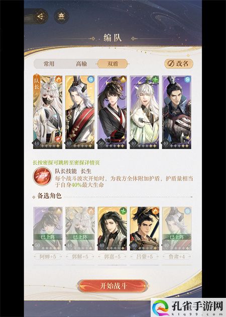 郭姐队长技能有盾,狮子喵下拉防御,其他队员全部攻击血量较低的枪男