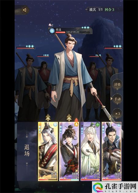 郭姐 此时有嘲讽在身,狮子喵要及时抬血,鲁肃 阿婵普攻枪男(鲁肃血量不健康就防御)