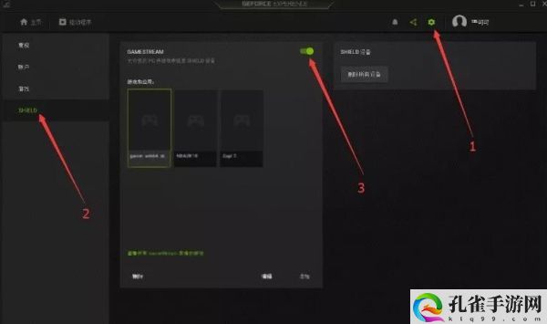 依次选择“设置”→“SHIELD”→打开"GAMESTREAM"