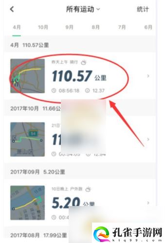 - 点击“查看所有运动记录”,选择您想查看轨迹的运动记录。