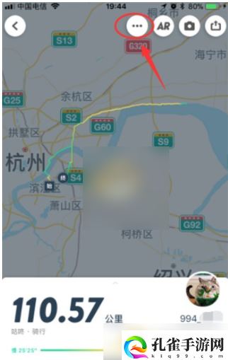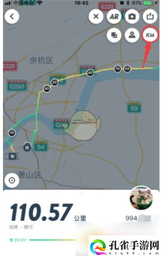 - 点击页面顶部的“更多”选项(通常是一个三个点的图标),找到并启用“轨迹显示”开关(通常是一个KM图标)。