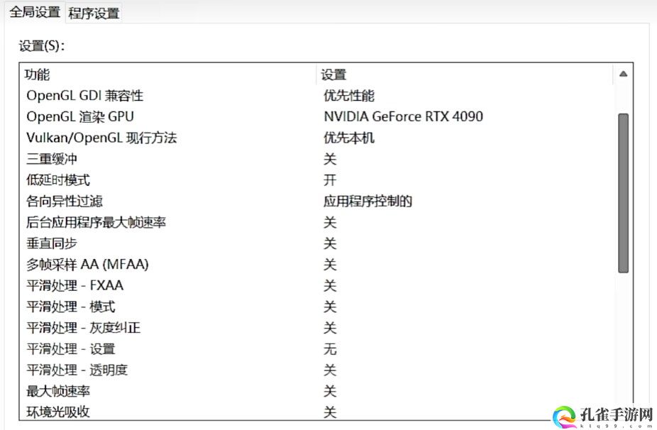 随后选左侧边栏的“管理3D设置”会弹出很多选项,GDI兼容性选性能优先,GPU渲染选拥有的独立显卡,现行方法选优先本机。三重缓冲选择“关”,不少玩家反馈开火总是要慢对手一点,很大一部分原因是因为这个。低延时模式也开启,各向异性过滤选由程序控制。