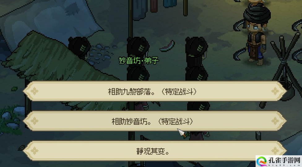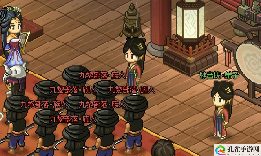 玩家在进入荒废庭院的时候会触发妙音坊与九黎部落战斗的剧情,这里我们选择帮助妙音坊,帮助完后就可以得知妙音坊具体位置,之后直接点击地图上的位置前往,进到屋子后会发现有很多入侵的九黎部落族人,我们依旧选择帮助妙音坊,将九黎部落打败后,坊主付瑶琴会先感谢我们一下,然后让我们三天后再来。