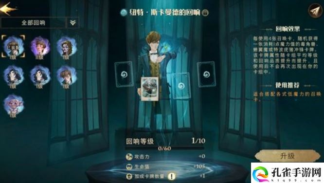 哈利波特魔法觉醒中有很多种不同回响,每一种都有特殊的作用,这次为大家介绍的是纽特·斯卡曼德的回响作用和卡牌阵容攻略,以及人物属性和获取的方法哦,快来看看吧。