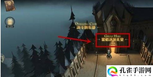 往霍格沃兹礼堂飞行,不需要进去,在门口的平台上就可以看到了。