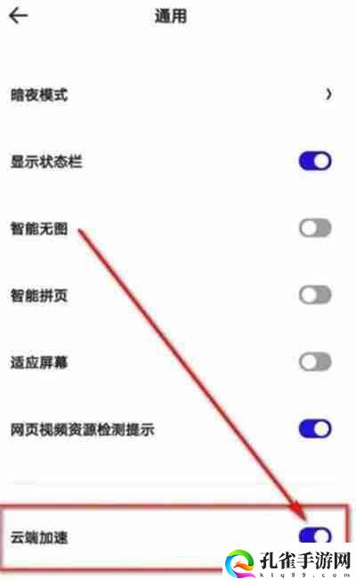 在通用设置页面,找到“云端加速”选项,并将其开启。