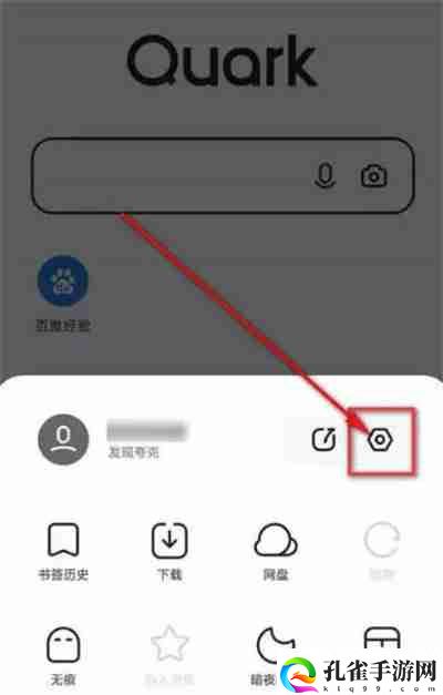 启动夸克浏览器,点击底部菜单栏,然后点击右上角的“设置”图标。