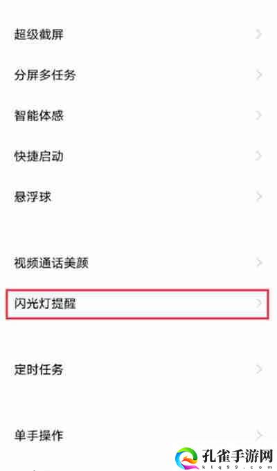 在“快捷与辅助”菜单中,找到“闪光灯提醒”或类似选项,点击进入。