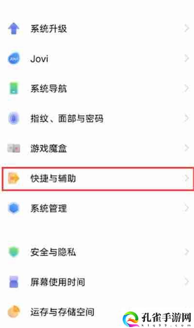 在设置菜单中,找到并点击“快捷与辅助”或类似选项(具体名称可能因系统版本略有不同)。