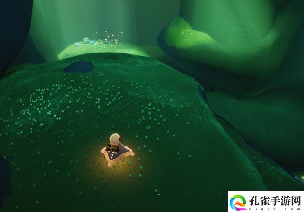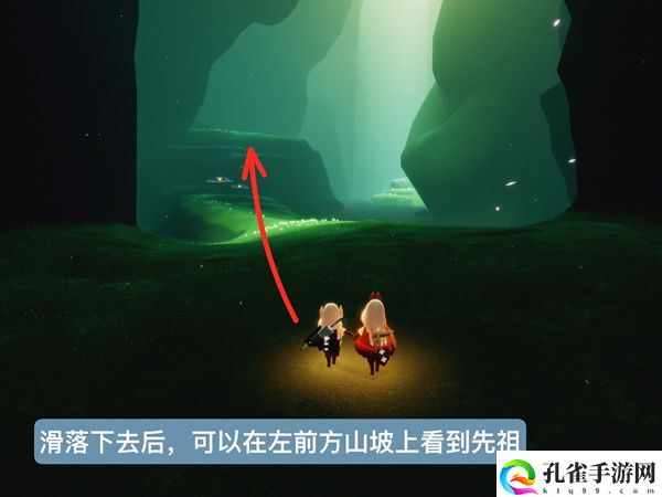 2、找到左侧山坡上,来进行红耳机先祖的点亮,跟着足迹来进行飞行;