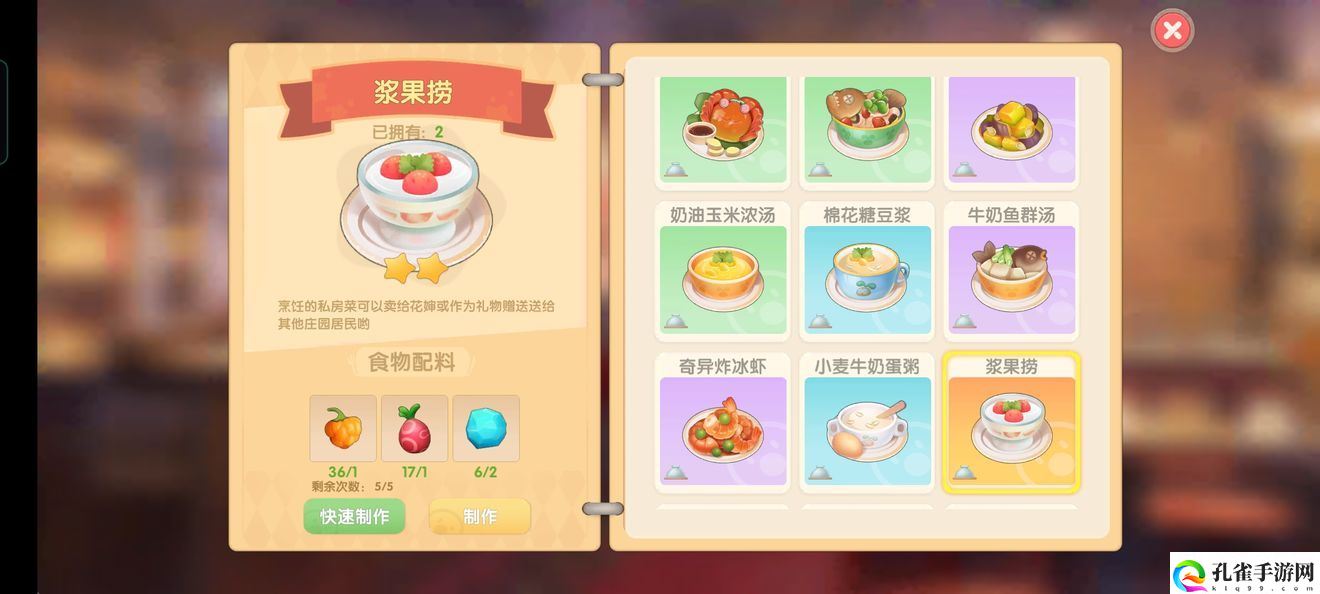 1、白色浆果目前能用于两种食谱,分别是浆果捞和浆果浓汤;