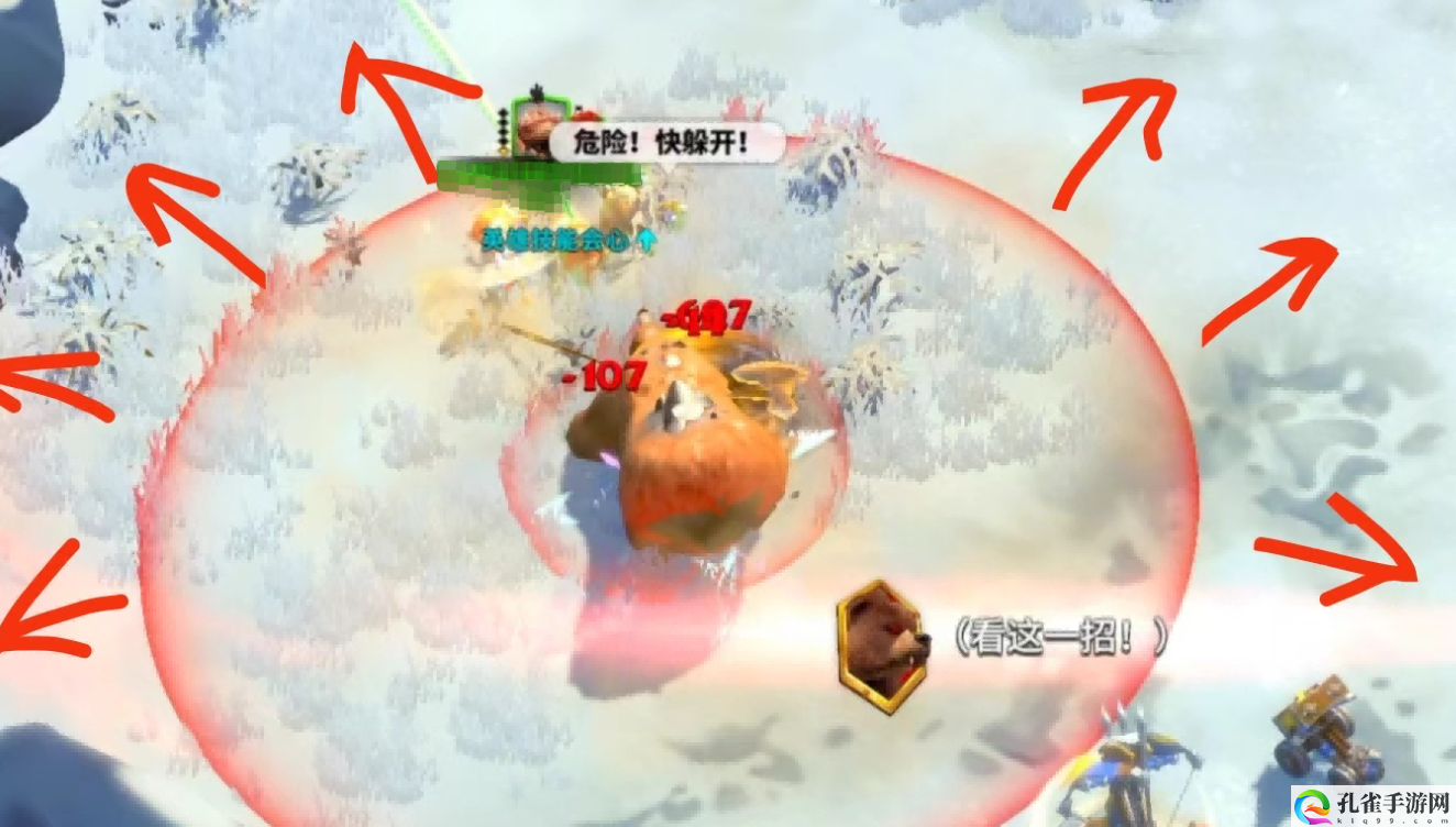 巨熊比较有威胁的技能包含裂地、奔袭、兽性,其中裂地和奔袭可以造成显著伤害,尤其是奔袭,可以直接将玩家撞到濒死,并触发战意和撕裂,增强近战伤害。需要注意在巨熊发动裂击时周围会有红圈,当看到红圈时候要立刻散开,坦克也部队也要散开。