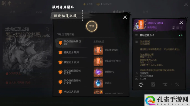 红莲之陵副本的普通难度有三个区域,每个区域只有武器和灵锁装备是相同的,失心套装的防具部位和褪色红莲八卦牌每个区都会掉落不同的编号,普通组队副本每一个星期都有至少10次机会,玩家觉得不够的话也可以消耗额外的奖励获得卷来增加次数。