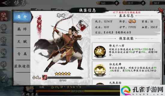 从上面所述的内容可以了解到郭靖的能力主要是他的一些技能,且伤害和辅助方面表现还是不错的,总体而言较为值得培养,而且在决战的过程中可以让其站在前排,以充分的发挥出其作战作用。
