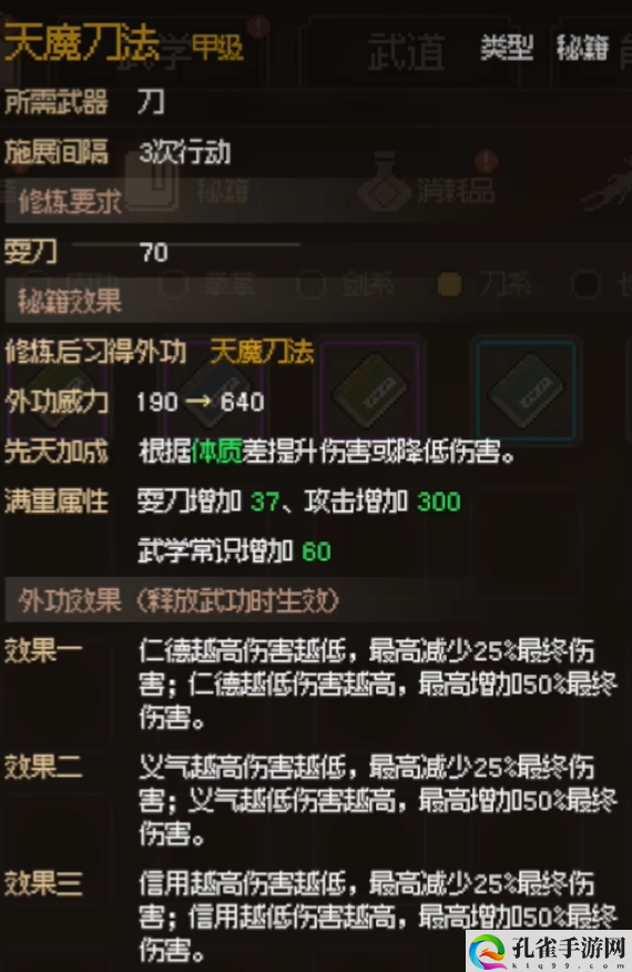 在目前的武器之中,刀系是可以稳稳的排入前三的流派。顶尖的橙色刀法有一套,然后一流的紫色刀法也有不少套。刀系流派的好处是攻速较快,攻击的伤害也足够高。刀类的紫色武器获取难度都不算高,基本上好的都可以在剑阁之内找到成品或者是图纸。而甲级的武器目前比较好用的是昆吾,这个需要在中后期行辕大帐之中获取到图纸,之后我们收集材料便可以直接打造。防具的话可以选择触发连击或者是暴击率的装备比较好。